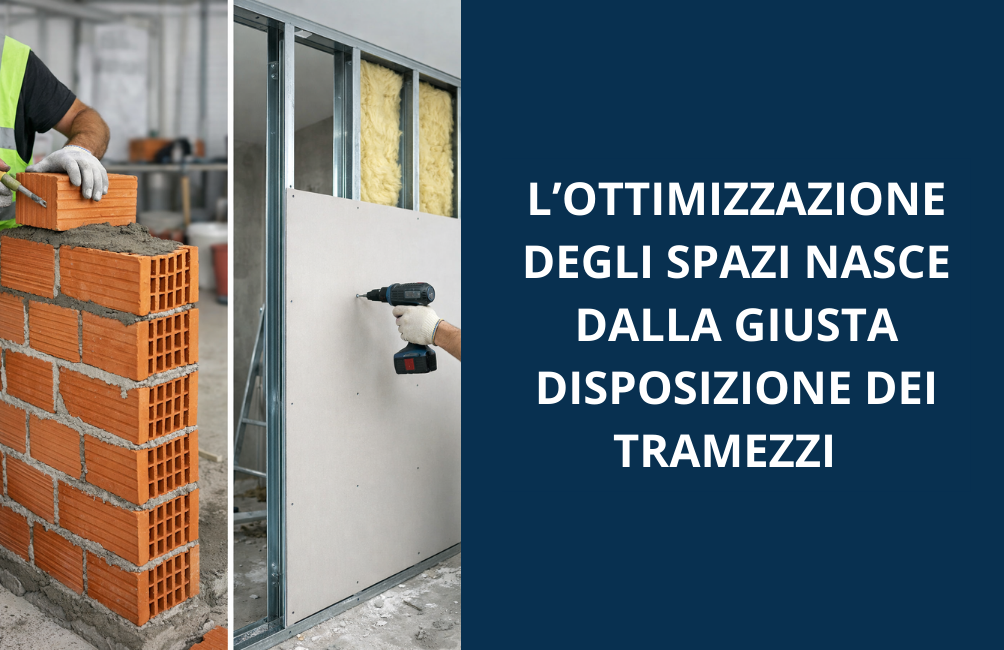 Tramezzi più o meno spessi fanno la differenza per il passaggio degli impianti e per l’inserimento di porte filo muro o scorrevoli.
